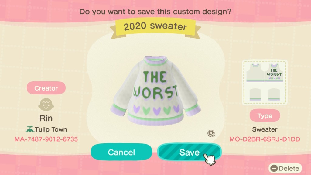 I’ve spent a lot of my free time this year replaying the same games over and over because it forms a bit of a routine. When Resident Evil 3 came out while my Switch was on backorder, I played it well over a dozen times until I could unlock the infinite rocket launcher. I loved it, but the second ACNH finished downloading, I wanted out of the virus game and into the land of absolutely no stakes.